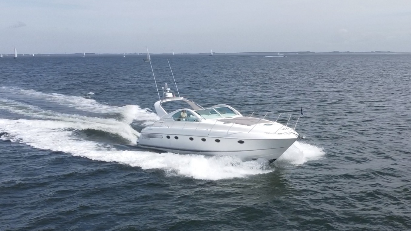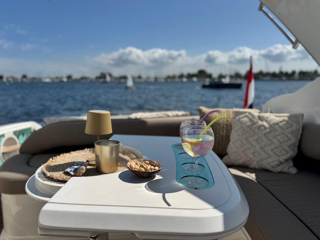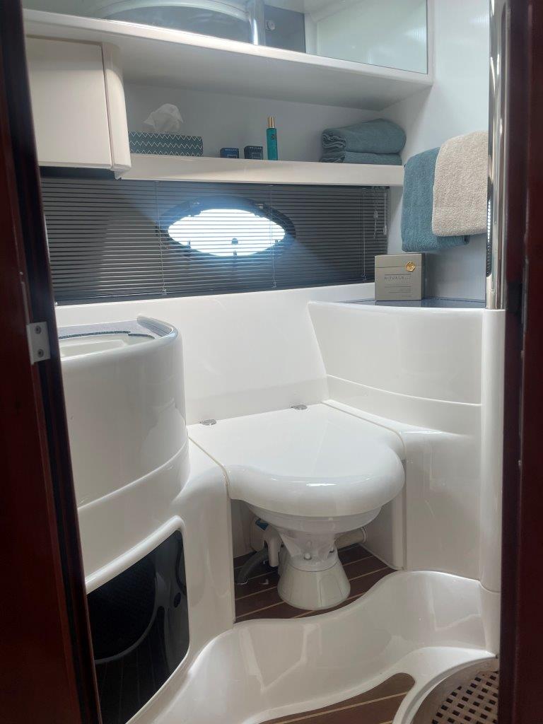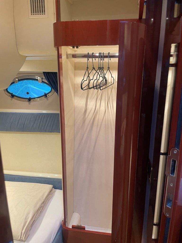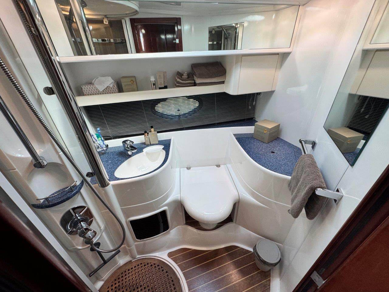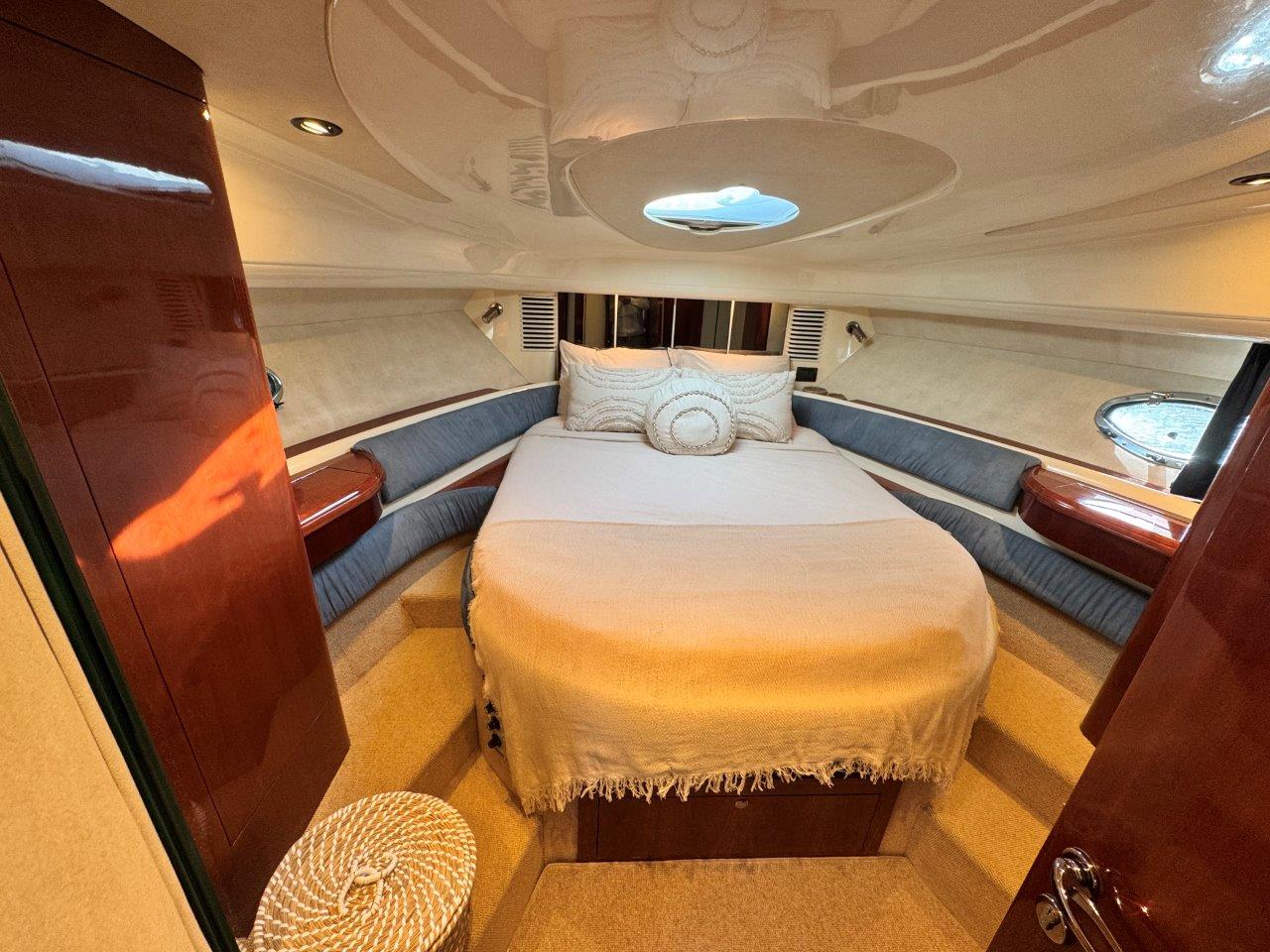 ‘Fifty Fifty’ is een plaatje van een Targa 48 en één van de weinige met een witte romp. Met haar 3 slaapkamers en 2 badkamers is het goed toeven aan boord.