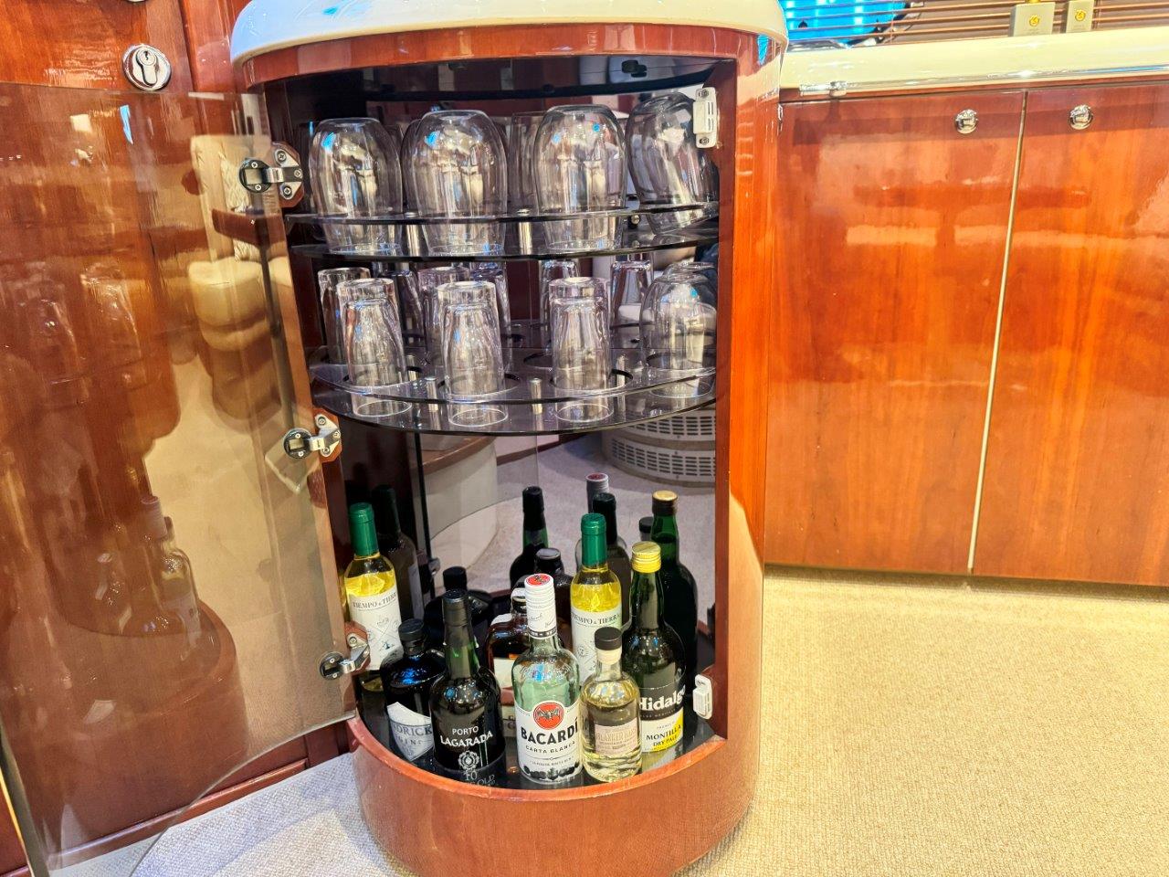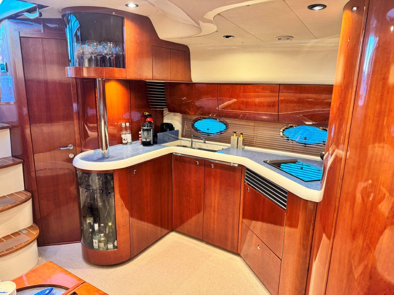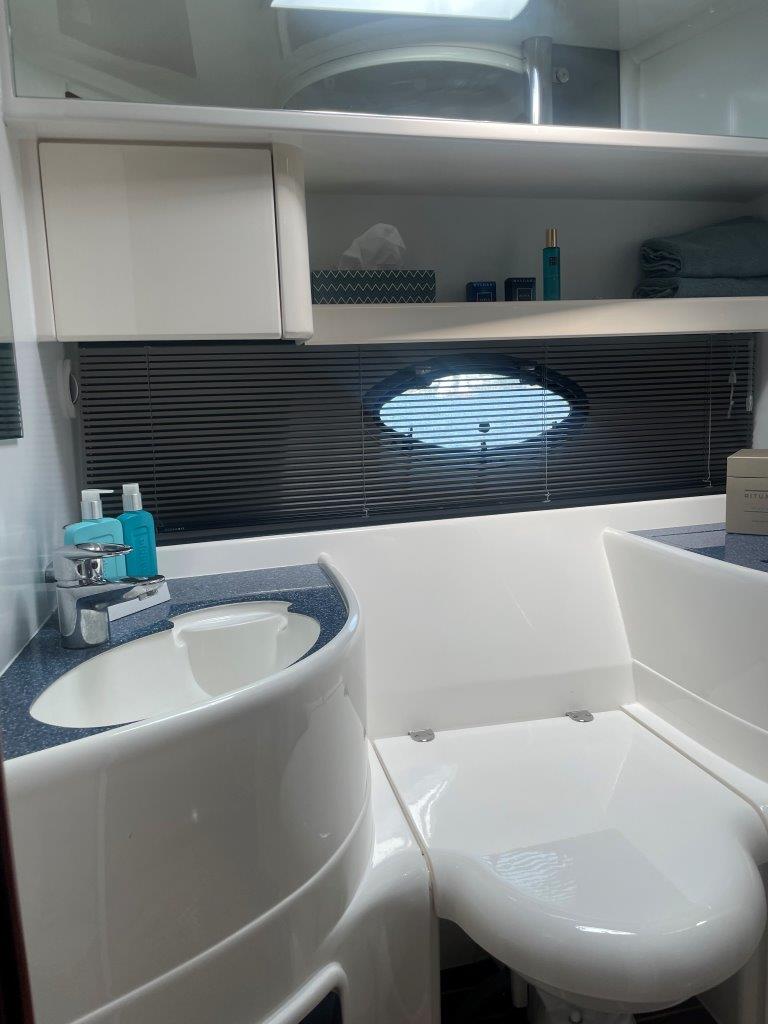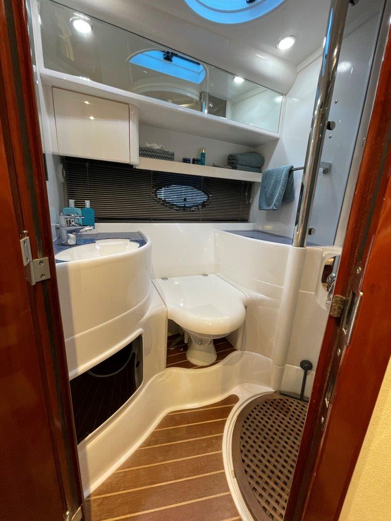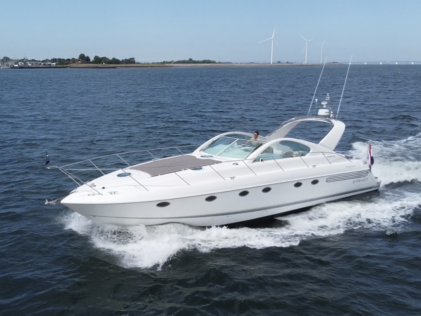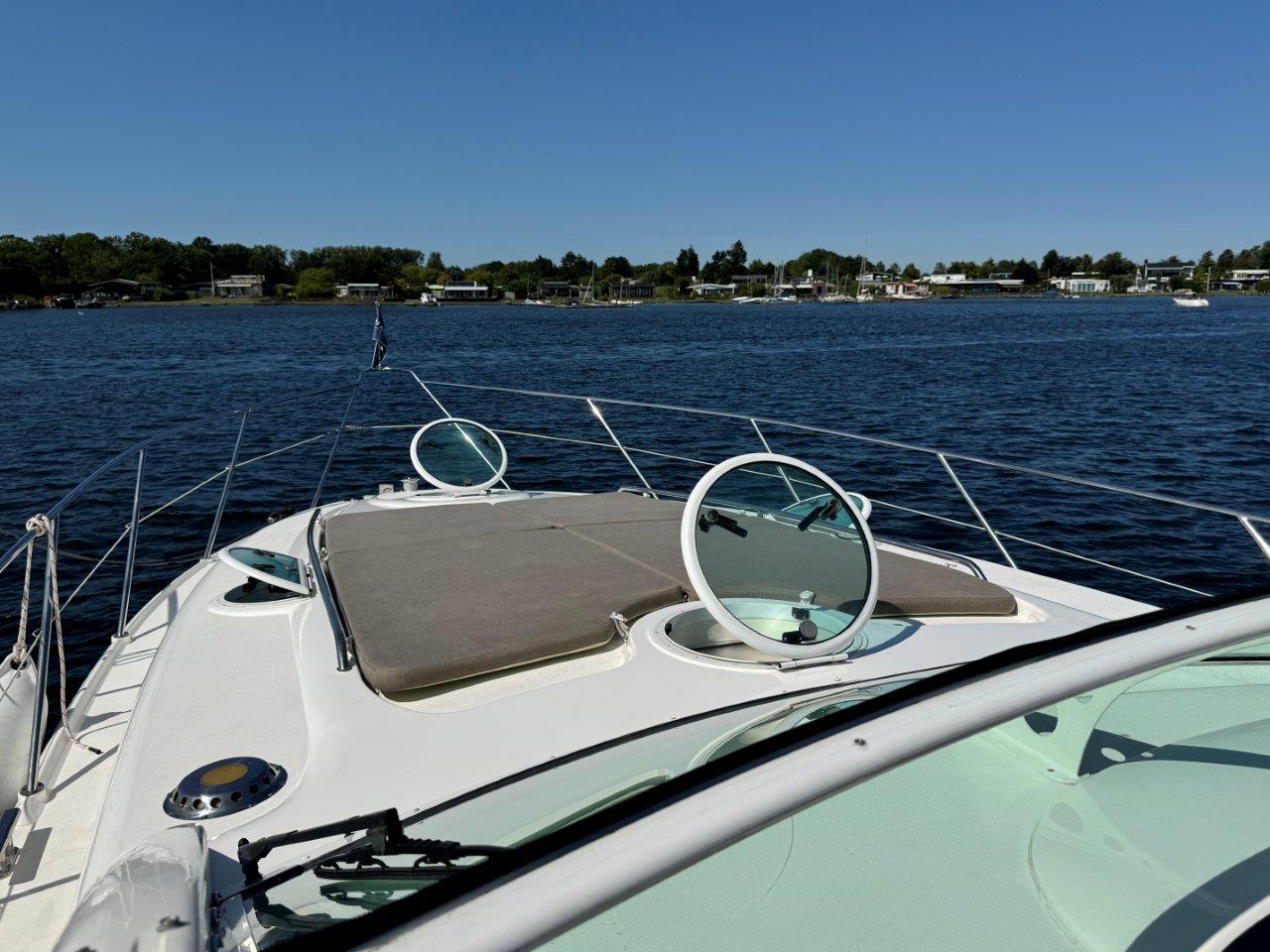 ‘Fifty Fifty’ is een plaatje van een Targa 48 en één van de weinige met een witte romp. Met haar 3 slaapkamers en 2 badkamers is het goed toeven aan boord.