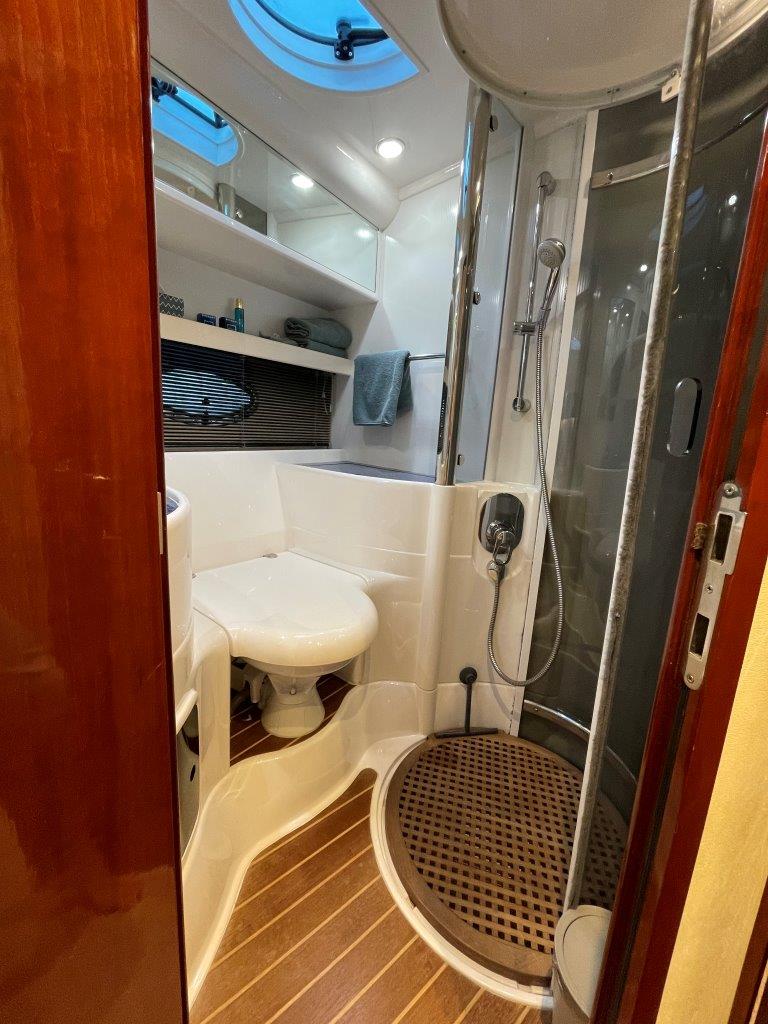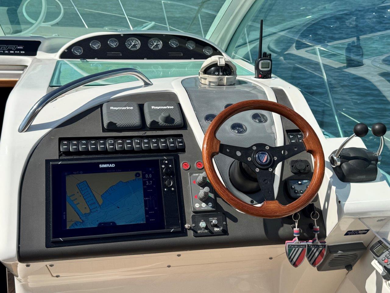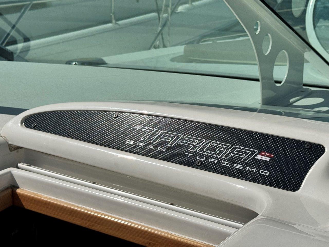 Deze Targa 48 is zeer compleet uitgerust. Vele optie’s en vernieuwingen zoals nieuwe kap, nieuwe Simrad plotter met radar, nieuwe Sunbrella bekleding in de kuip, Fusion audio, Boeg- en hekschroef, jonge Cummins Onan generator.