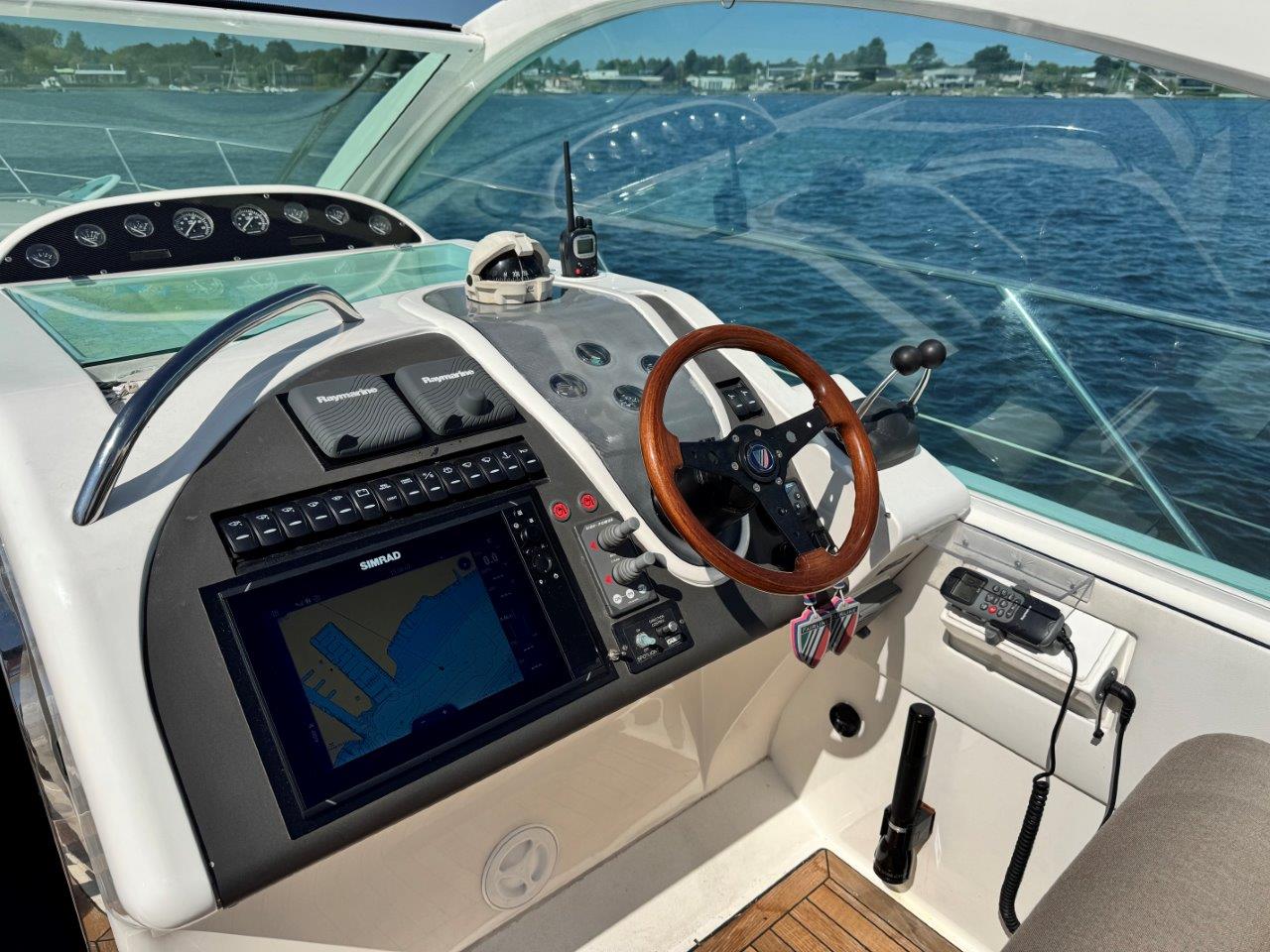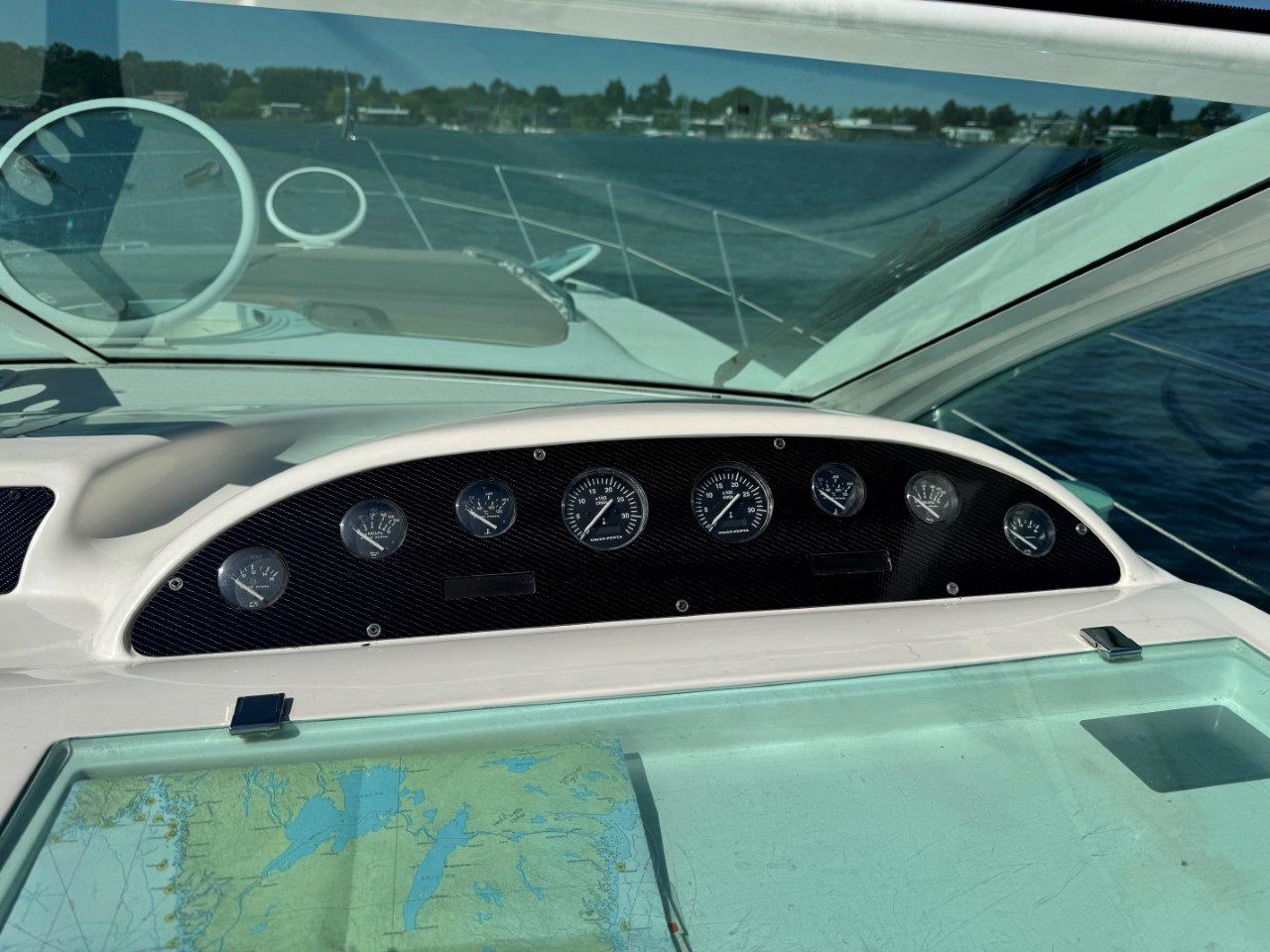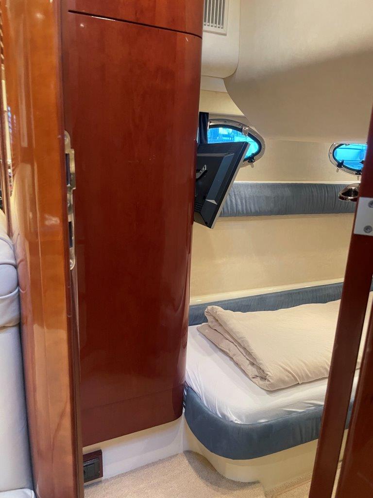 Deze Targa 48 is zeer compleet uitgerust. Vele optie’s en vernieuwingen zoals nieuwe kap, nieuwe Simrad plotter met radar, nieuwe Sunbrella bekleding in de kuip, Fusion audio, Boeg- en hekschroef, jonge Cummins Onan generator.